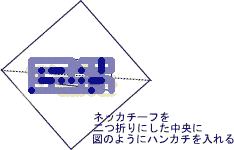 ● 頭を包むスカーフの折山にハンカチを入れる ハンカチを図のように適当な幅にたたみます。 ![]() これを三角形に折ったスカーフの折山に入れます。 こうしてハンカチを芯にして被ると、 顔をふちどるラインがゆったりしてきれいに見え頭もぺちゃんこになりません |