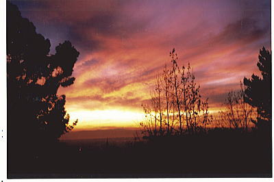 そしてね。日本のようにアナウンスはないの。降りたい時は見慣れた景色の近くにきたら紐を引っ張るの。夜なんて何も見えないからハラハラ、ついにミスして終点まで行ってしまったの。乗客は私と友人2人だけ。言葉はできない、真っ暗、青くなったわ。ドライバーに尋ねられて、やっと学校名を言ったの。そしたら山手線みたいにクルクル巡回しているバスだったの。そしたらバスストップを無視して学校のそばまで行ってくれたの。公共のバスがよ。日本のように規則一辺倒ではないのね。あったかいの。すごく恐ろしい思いしたけど、その何倍ものステキな感情を味わったわ。(↑高台にある学校の寮から撮影-夕焼けが始まると人の顔もインテリアも建物も真っ赤に染まる)