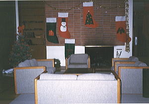 A 確かに学校へ帰ったら、たんと叱られた。たった2人で言葉も下手なクセして、それも夜バスに乗るなんてと。なにも好きで夜乗ったわけではないワ。降りる場所がわかんなくなって夜になってしまったの。 でもこのホットで恐い思いは級友の誰も味わったことのない体験だと思っている。(学校のロビー・手作りのクリスマスデコレーションが暖炉のそばに飾られていた→)